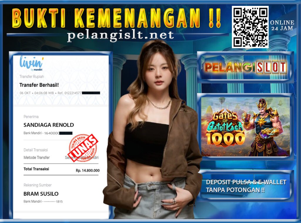 PELANGISLOT – BUKTI JACKPOT PRAGMATIC 06/OKTOBER/2025 Kemenangan spektakuler kembali terjadi di PELANGISLOT, platform slot online terpercaya yang sudah dikenal menghadirkan permainan seru dan peluang jackpot nyata. Kali ini, seorang member dengan ID jarot***22 BERHASIL MERAIH JACKPOT SEBESAR Rp,14.800.000 RUPIAH hanya dengan modal awal Rp1.000.000 RUPIAH.